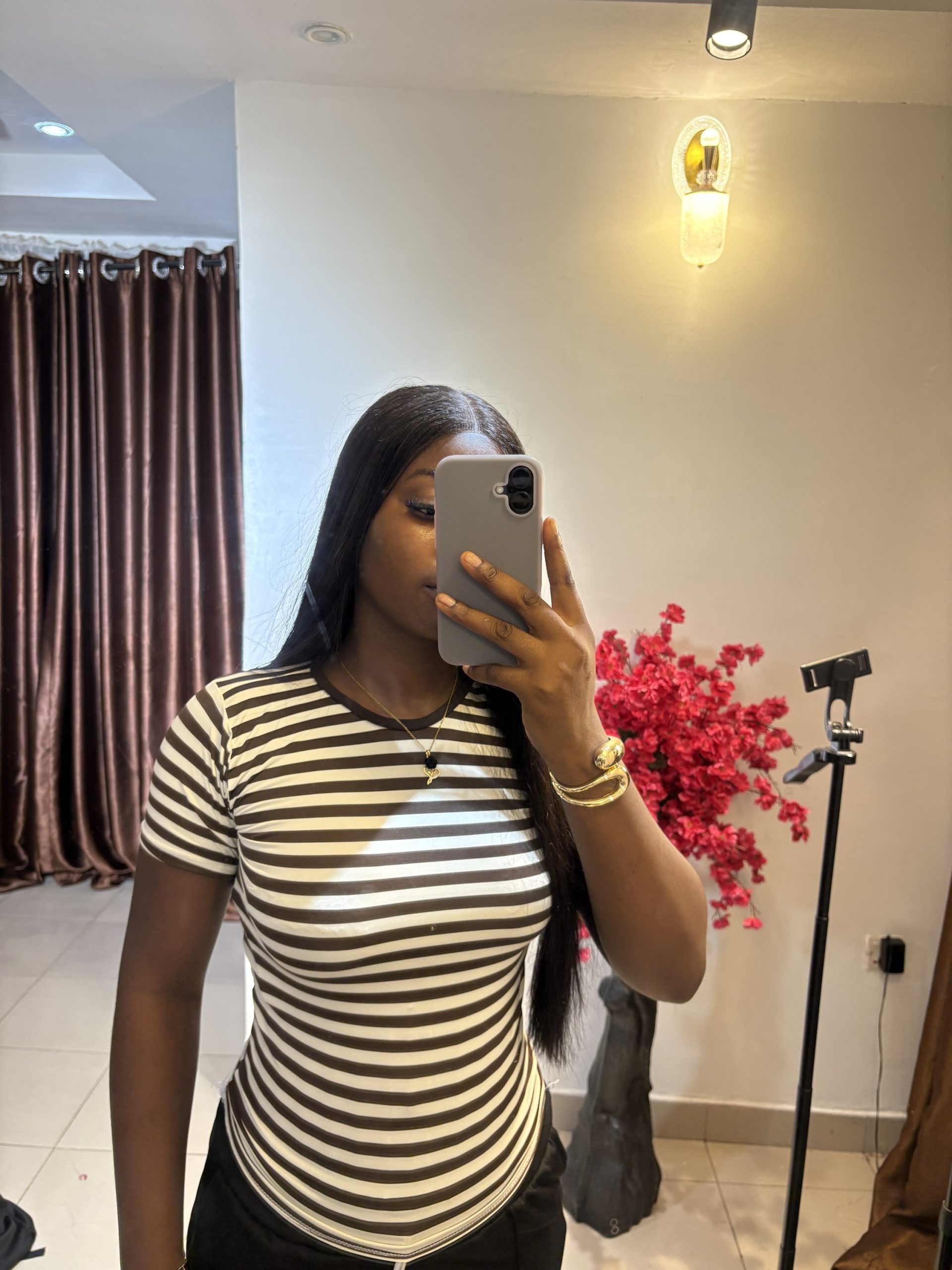 Be the first to review “Brown and white striped basic top”