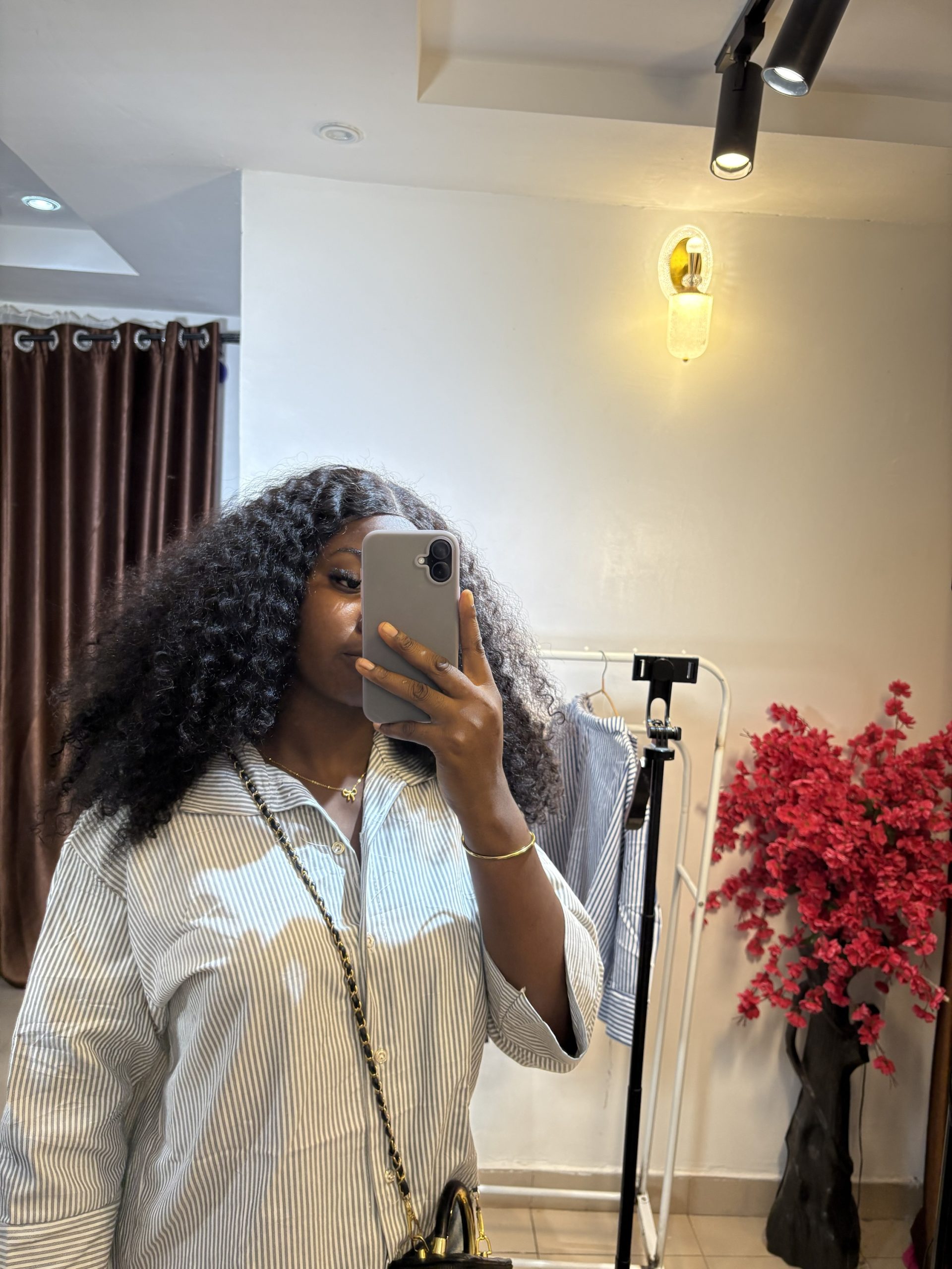 Grey and white striped shirt